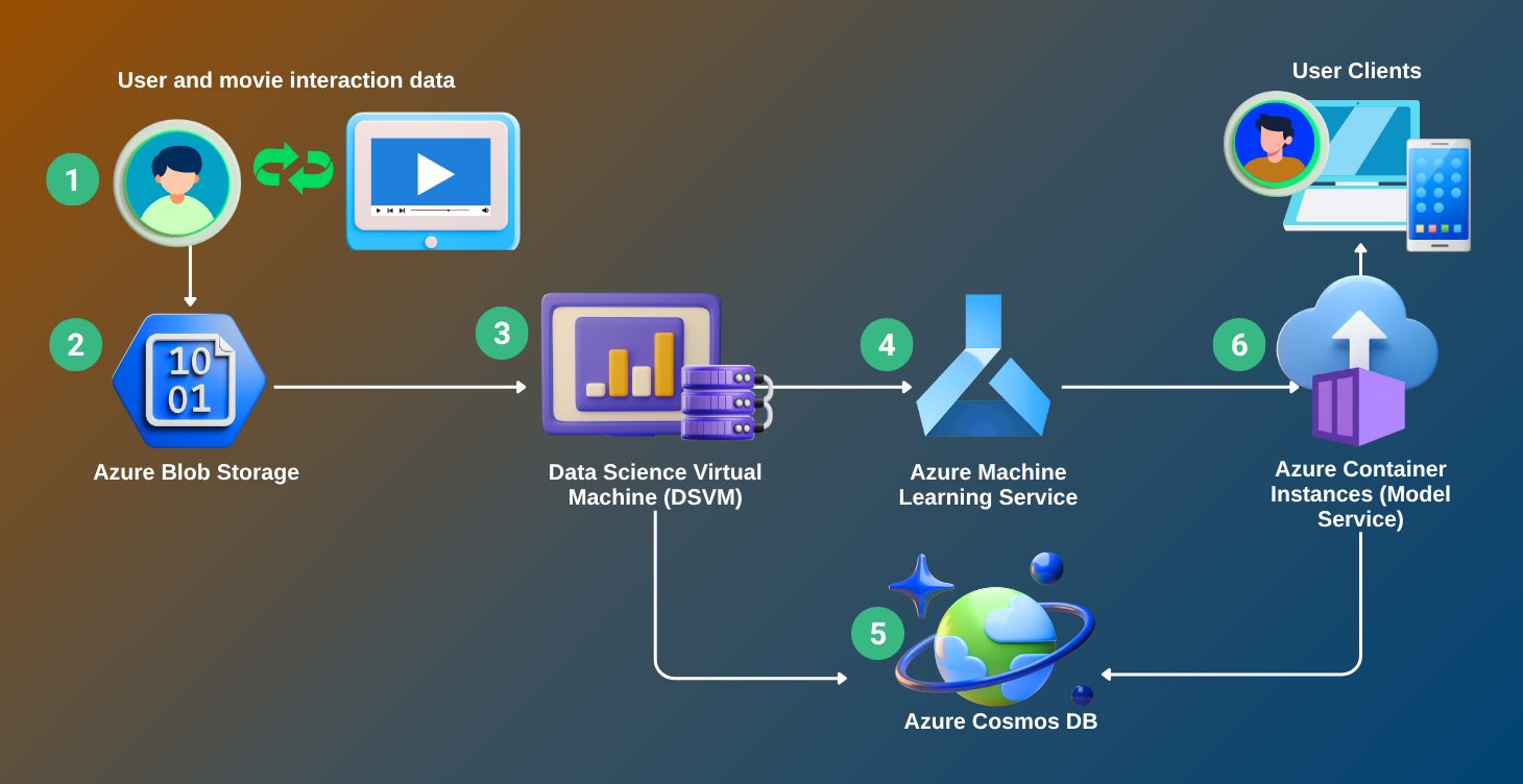 Create a machine learning model using Azure ML to recommend movies to users based on their preferences and viewing history.