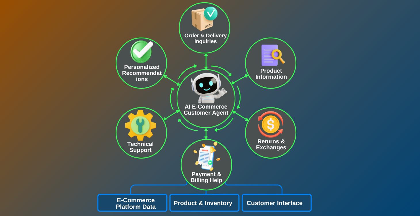 Implement a conversational AI agent for e-commerce platforms to provide personalized customer support, answer queries, and assist with product recommendations.