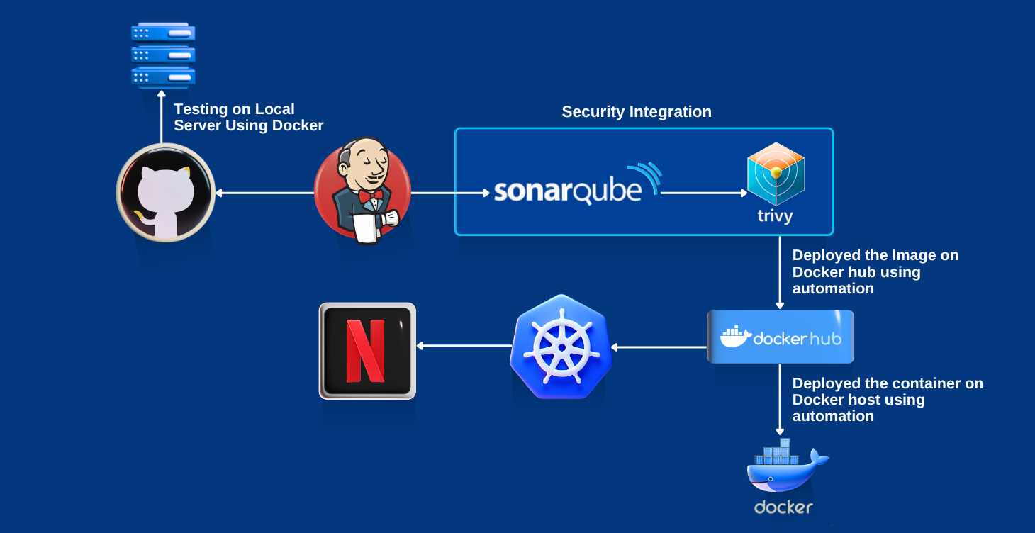 This project involves deploying a Netflix clone application on a Kubernetes cluster. The Netflix clone is a microservices-based application that includes various components like user authentication, content streaming, and a recommendation engine. Each component is containerized and deployed as a separate service in the Kubernetes cluster. The project includes setting up Kubernetes manifests for deployments, services, and ingress controllers. CI/CD pipelines may be implemented using tools like Jenkins or GitLab CI to automate the deployment process. The objective is to achieve scalability, high availability, and efficient resource management for the application