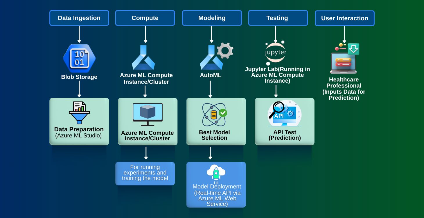 Create a predictive model for diabetes using Azure Machine Learning. You’ll set up an Azure ML workspace, create a dataset, and run AutoML experiments to identify the best model for accurate predictions of diabetes risk.