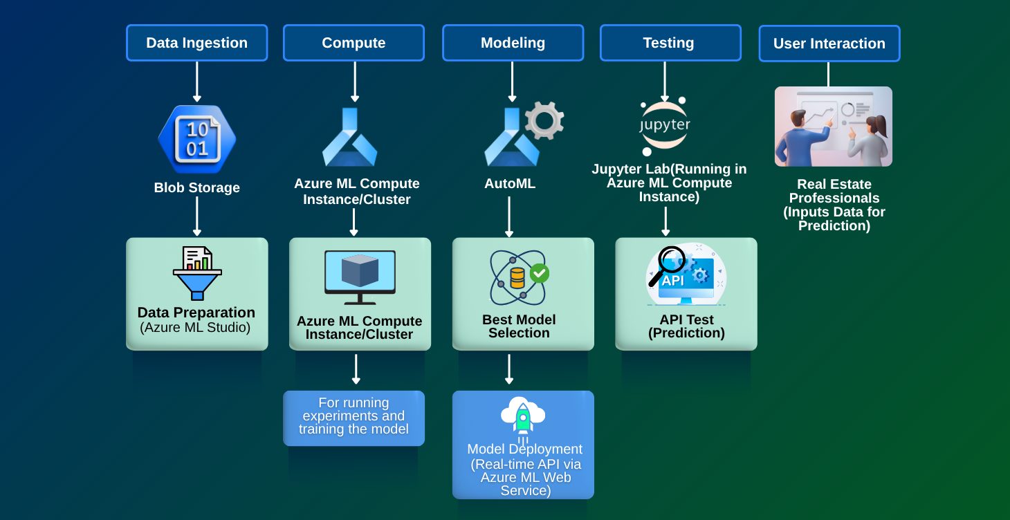 Develop a Housing Price Prediction model using Azure ML. You’ll set up a workspace, create datasets, and run an AutoML experiment to build and deploy a predictive model for accurate housing price forecasts.