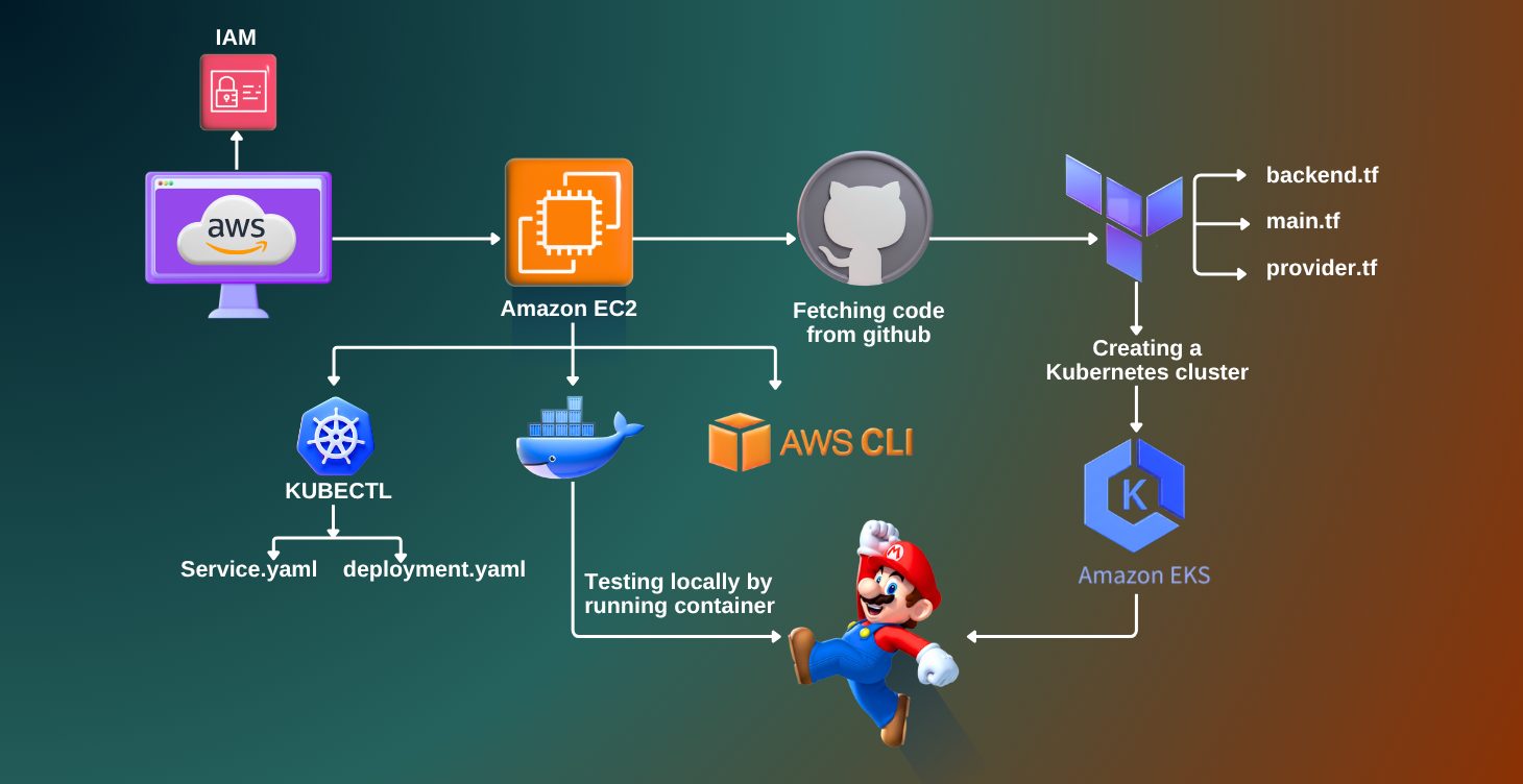 This project focuses on deploying a containerized version of the Super Mario game application on a Kubernetes cluster using Terraform for infrastructure as code. The process includes defining the Kubernetes resources, such as pods, services, and deployments, in Terraform configuration files.