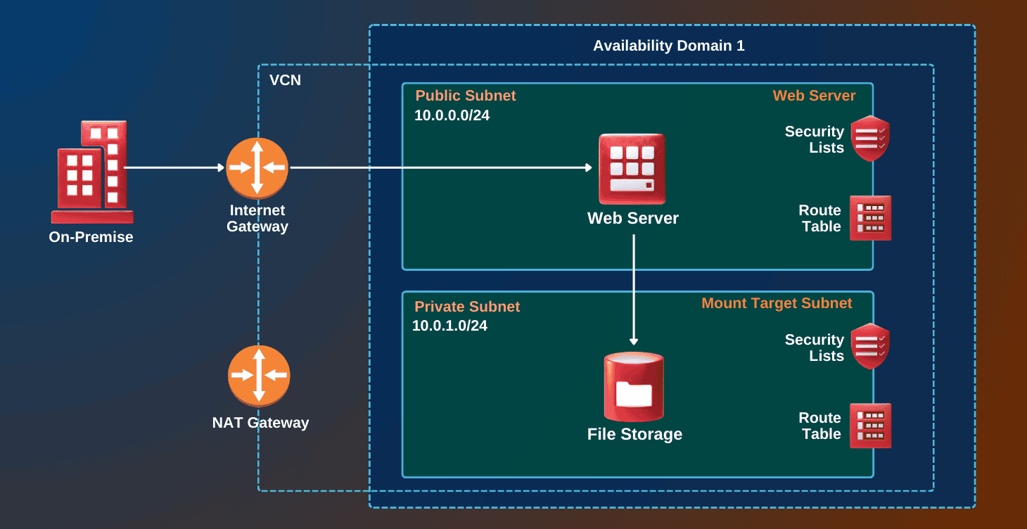 This project focuses on configuring file system storage in OCI. You’ll learn to set up and manage block volumes and file systems, which are critical for handling persistent data storage in cloud-based applications.