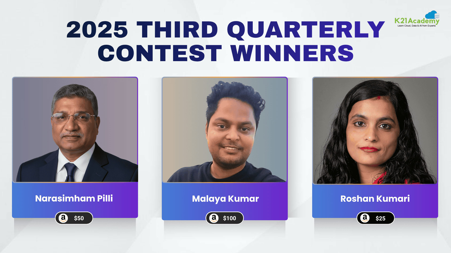 Join K21 Academy's exclusive quarterly draw for a chance to win certification vouchers, training sessions, and more.